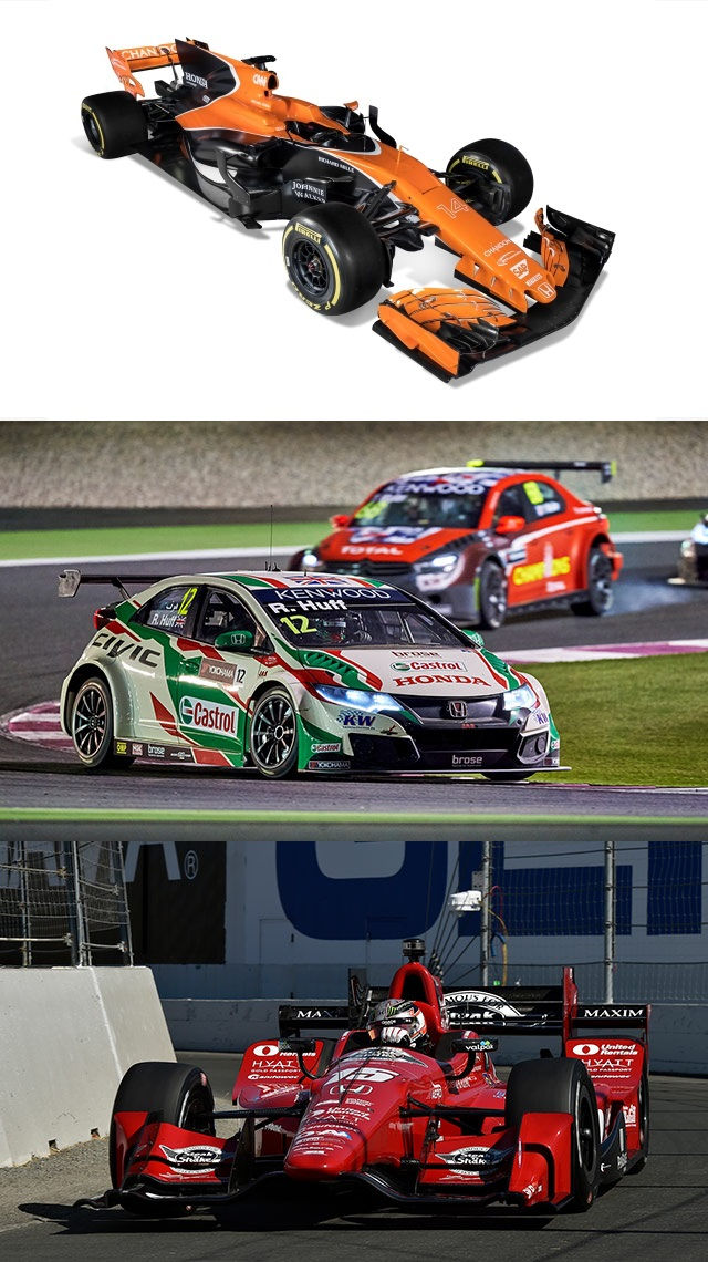 The wide-ranging race categories in which Honda has been active in car racing as well.