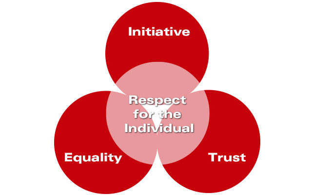 The relationship among associates at Honda should be based on mutual trust. Trust is created by recognizing each other as individuals, helping out where others are deficient, accepting help where we are deficient, sharing our knowledge, and making a sincere effort to fulfill our responsibilities.